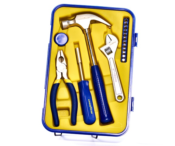Set de herramientas de 17 piezas, contiene: 1 Alicate Combinado 6'', 1 Martillo de 8oz, 1 Llave ajustable de 6'', 1 Mango Destornillador, 12 Puntas para estornillador: Ranurado: 3mm - 4mm - 5mm-_/ Philips: PH1 - PH2 - PH3 / Torx: T10 - T15 - T20 / Hex: H4 - H5 - H6 / 1 Tapon Cubre Martillo